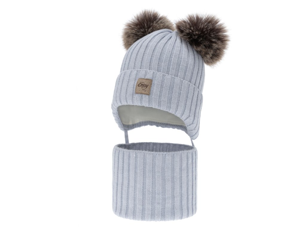 Zimný set pozostávajúci z čiapky s dvoma brmbolcami a praktického nákrčníka je nevyhnutnou súčasťou zimného šatníka každého chlapca. Spája funkčnosť, komfort a moderný dizajn – ideálny na každodenné nosenie, prechádzky aj zimné radovánky.
