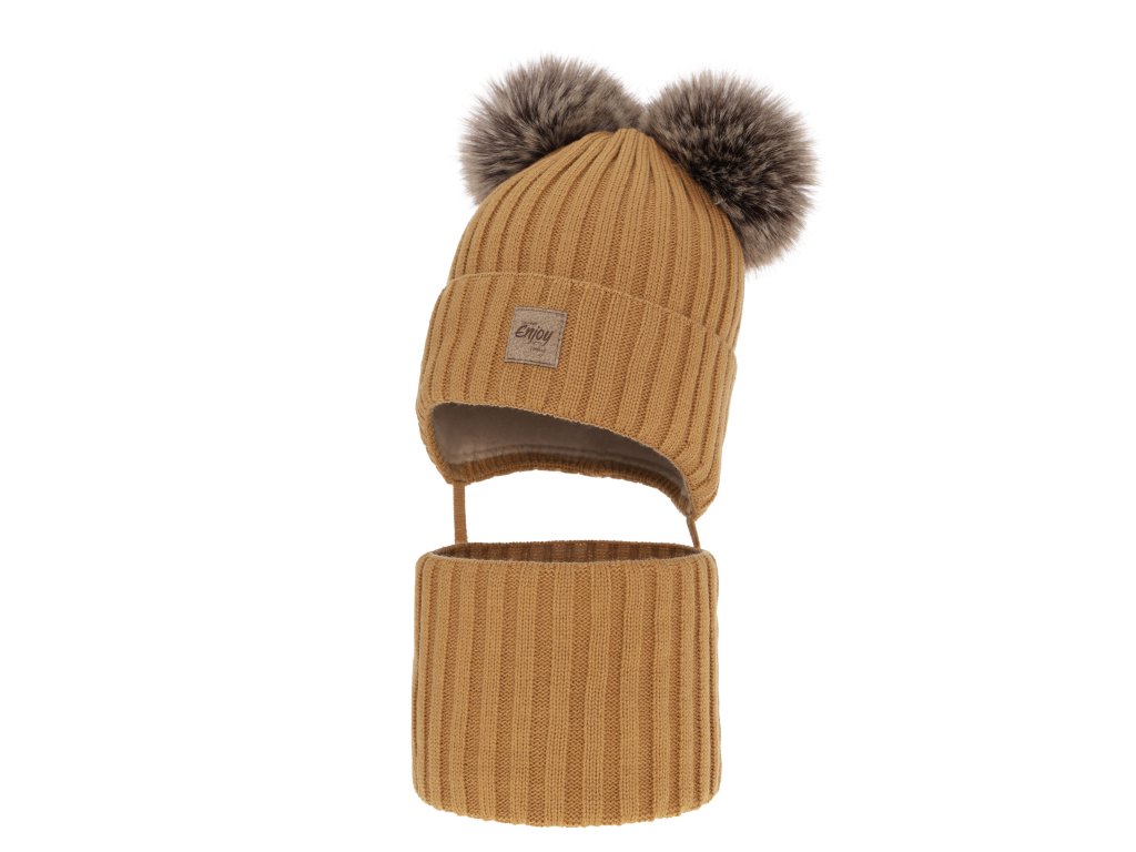 Zimný komplet pre chlapca – čiapka s dvoma brmbolcami a teplý nákrčník ORANGE